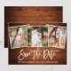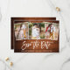 Modern Brush Script Rustic Wood Kärlek 3 Fotos Rädda Datum Förlovningskort