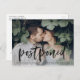 Behöver du ändra datum för din bröllopsdag? Våra eleganta ändringskort för bröllopsförskjutning är perfekta för att meddela gäster om ditt nya bröllopsdatum. Det trendiga ändringskortet har "uppskjutet" i en svart, handskriven borstskrift överlägg med ert horisontella förlovningsfoto. Anpassa kortet genom att lägga till era namn, returadress, bröllopsdetaljer, bröllopswebbplats, etc.