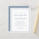 Bröllopbjudan till elegant och trendig innehåller en enkel minimalistisk contemporary med dubbla ram gräns i dammig blå färg på en skarp vit bakgrund. Traditionell ordalydelse ger en tidlös men ändå modern sofistikering. Anpassa designen i bröllop med dina detaljer i chic, damm, blå text och skript. Kortets baksida matchar i fast dammblått.