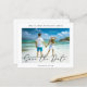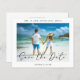 Detta är ett modernt och budgetvänligt bröllop spara datum-kort som använder ett vackert stil-stift med kalligrafi tillsammans med en minimalistisk fotodesign som trycks på ett pappert lakan. Den omvända sidan innehåller ett meddelande och en QR-kod som du kan anpassa. Ändra enkelt färg, text och foton efter behov. Kontakta designern om du vill ha frågor som rör den här designen.