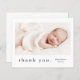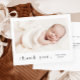 Ett enkelt foto i baby-tack med ett modernt namn och ett foto på framsidan. Baksidan har ett stort fullt-huvud och ett personligt meddelande från familjen. Klicka på knappen Redigera om du vill anpassa designen med foton och detaljer.