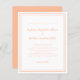 Bröllopbjudan till elegant och trendig innehåller en enkel minimalistisk contemporary med en dubbla ram gräns i persiko-färg på en skarp vit bakgrund. Traditionell ordalydelse ger en tidlös men ändå modern sofistikering. Anpassa bröllop-designen med dina detaljer i chic, persisterande text och skript. Kortets baksida matchar i fast persika.