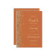 Den här elegantens lämnat kant har en modern bröllopsinbjudan i guld i glitter. Anpassadet kombinerar handskrift, rityta och kursivt typsnitt i blek guld-färgad med en brinnande orange. Den omvända sidan ger plats för bröllop-information på en solid bakgrund, tillsammans med en QR-kodgäst som kan söka igenom för att besöka webbplatsen och OSAN, vilket sparar kostnaderna för att skriva ut och skicka separat OSA kort.
