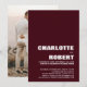 Bjud in dina vänner och nära och kära med denna stilrena minimalistiska burgunderfärgade med vit text bröllopsmottagningsinbjudan med ett foto av det nygifta paret på baksidan för att dela din glädje i ditt senaste äktenskap. För bästa resultat för att passa din valda bild för baksidan av inbjudan, beskära den till ett 5 x 7-förhållande.