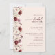 Elegant kalligrafisk bröllopsdusch burgunderfärgad skriptinbjudan med vildblomsdesign.