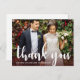 Enkel vit " tack "-skrift med söta bröllop tack meddelande på baksidan av kortet, och full foto framsida med trendig genomskinlig burgunderfärg överlägg.