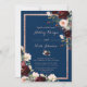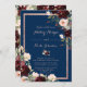 Rosa Burgundy Blue Wedding Inbjudan till marinen Blue Guld Blommigt Burgundy