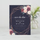 Modern burgundy Blommigt Geometric Midnight Navy Blue Spara datumet. Den bedövande marinblått sparar datumet med geometrisk kopparramar och vit och grått text med en digitalt justerad utskrift av handmålad vattenfärgsfärgad blommigt arrangemang i skuggor av rosa, burgundi, blått grått och koppar ro guld i midnattsflottblått. Anpassa med din bröllop-information. Besök vår butik, Austen & Grace, om du vill visa våra växande designers-intervall och kontakta oss om du behöver matchande produkter från extra eller hjälp via kontaktknappen eller e-post direkt på contact@austenandgrace.com