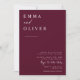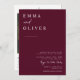 Den här inbjudan innehåller ett rent och enkelt blockserif-typsnitt och kalligrafi i en burgundisk bakgrund. Den enkla och rena utformningen av denna inbjudan fungerar bra med alla bröllop-teman och är definitivt ett underbart tillägg till bröllop. Prova att gå grönt med denna allt-i-ett-moderna miljövänliga inbjudan genom att minska på ytterligare OSAS- och detaljkort. Lägg bara till din egen QR-kod längst bak i inbjudan för dina gäster till OSAN och få mer information om bröllop. Anpassa namn och formuleringen i några enkla steg och anpassa inbjudningskortet med ditt foto av lycklig-paret till ge ett unikt och personligt drag. Observera: Det går inte att redigera, ta bort eller flyttat elegantens grafik och andra grafiska inslag i ordalydelsen "och" och "detaljer + osa". De är fixerade. Om du behöver ändra färg kan du anpassa inbjudan. Du kan anpassa och anpassa inbjudan så att den passar dina bröllop-evenemangsbehov och bara klicka på att anpassa inbjudan. Du kan enkelt anpassa inbjudan med din egen text och den digitalt med dina gäster, oavsett om det är via text, e-post eller social-media. Om du vill kan du också skicka en utskriven version till dina gäster. Eller så kan du göra båda sakerna - skicka en digital version och följa upp med en utskriven kopia för personligt bruk!