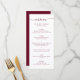 Elegant anpassningsbar burgundy bröllop-meny med ett modernt skriptteckensnitt. Anpassa enkelt onlinen. Matchningsalternativ som är tillgängliga för att komplettera den minimalistiska bröllop-menyn.