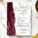 Modern Burgundy Guld Agate Marble Bröllop Inbjudningar