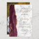 Modern Burgundy Guld Agate Marble Photo Bröllop Inbjudningar