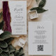 Modern Burgundy Guld Agate QR Code Bröllop Inbjudningar
