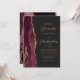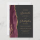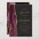 Den här elegantens lämnat kant har en modern bröllopsinbjudan med en burgundisk vattenfärgad agat gräns som trimmas med faux guld glitter. Anpassadet kombinerar skript av guld-färgad och sans serif typsnitt på en svart bakgrund. Den bakomliggande sidan har en matchande burgundi och guld-agate-design.
