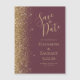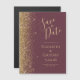Det moderna magnetkortet i bröllop spara datum från, som är lämnat kant i eleganten, har ett guld faux glitter gräns. Anpassadet kombinerar handskrift, rityta och kursivt typsnitt i blek guld-färgad på en mörks burgundbakgrund.