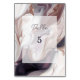 bordsnummer i bröllop med strömmande, abstrakt vattenfärger i burgnyans, grått, elfenben och ljusrost. Snyggt modern design.