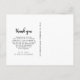 Enkel vit "tack"-skrift med söta bröllops tack-meddelande på baksidan av kortet, och ett fullständigt foto på framsidan med trendig genomskinlig burgundy överdrag.