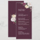 Modern Burgundy Peonies Bröllop-menykort Meny