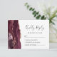 Det moderna djurutrymmeskortet i elegantens lämnat kant har en burgudisk vattenfärgad agate i gräns som trimmas med faux ro guld glitter. Rubriken "Kinely Reply" visas i handskriftsskript, med anpassade text nedanför i färgat grått-färgteckensnitt på vit bakgrund. Den bakomliggande sidan har en matchande burgundisk och ro guld agate-design.
