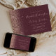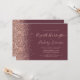 Den lämnat kant i eleganten är en modern bröllopsinbjudan från ro guld faux glitter gräns. Anpassadet kombinerar handskrift, ritplatta och kursivt typsnitt med handskrift för ro rosa på en burgundröd bakgrund. Den bakomliggande sidan har en passande burgundi och ro guld glitter.
