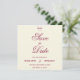An elegant, classic Save the Date featuring a delicate bow graphic and rich burgundy script on soft cream paper. Perfect for couples planning a timeless and formal wedding.