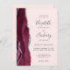 Modern Burgundy Silver Agate Blush QR Code Wedding Inbjudningar