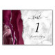 Modern Burgundy Silver Agate Marble Bröllop Bordsnummer