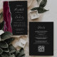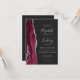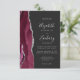 Den här elegantens lämnat kant har en modern bröllopsinbjudan med en burgundisk vattenfärgad agat gräns som trimmas med silver faux glitter. Anpassadet kombinerar handskrift, tryckplåt och kursivt typsnitt med silver grått mot svart bakgrund. På baksidan finns utrymme för information om bröllop på en solid mörk-bakgrund, tillsammans med en QR-kodgäst som kan söka på webbplatsen och OSAN, vilket sparar kostnaderna för utskrift och utskick av separat OSA kort.
