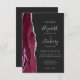 Modern Burgundy Silver Agate Mörk QR Code Bröllop Inbjudningar