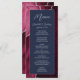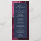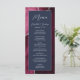 Den här eleganten har den moderna bröllop-menyn en vattenfärgsburgundisk bakgrund som trimmas med silver faux glitter. Texten visas i handstil för elegant silver grått och sans serif typsnitt på en marin blå rektangel. Den agate-designen upprepas på motsatt sida.