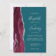 Modern Burgundy Silver Agate Teal Blue Wedding Inbjudningar