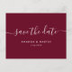 Modern Burgundy-skript Bröllop spara datum Meddelande Vykort