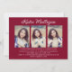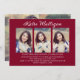 Modern, elegant, burgig 4-foto-studentfest med foton på båda sidor av kortet. Anpassa till namn i student, namn och studenten, tillsammans med all information från party.
