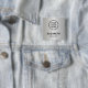 Modern namn bricka-knapp med ditt företags eller din organisations logotyp mot en silver-komplex metallisk bakgrund. Lägg till en namn och titel i enkel typografi.