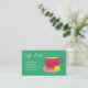 Ett sött, modernt stil-affärskort som lämpar sig för en café - antingen mobil café eller kaffe eller tebutik. Den här visemiska designen illustrerar ett sött enkelt te kopp i det moderna stil med citronte mot en teal bakgrund. Bakgrunden färg kan ändras till kostym. Det här affärskortet är helt anpassade att inkludera dina egna personuppgifter.