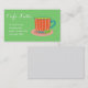 Ett sött, modernt stil-affärskort som lämpar sig för en café - antingen mobil café eller kaffe eller tebutik. Den här visuella designen visar en illustration av ett sött enkelt te i kopp, modernt stil med peppermint te mot en grönt bakgrund. Bakgrunden färg kan ändras till kostym. Det här affärskortet är helt anpassade att inkludera dina egna personuppgifter.