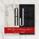 Enkel, modern kalligrafi, rött svart och vitt marmor bröllop tack för att du vill ha ett gigantiskt monogram initialer av brud och groom.
