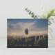 Liggande foto med ett andra foto på baksidan som tillval. "Spara datumet" i guld kan skalas och flyttat.