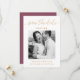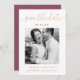 Den här enkla Bröllop spara datum har en vacker kalligrafi i guld färg och ett foto i ram på framsidan med en mörk bakåtriktad rosa.