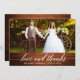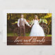 Elegant Modern Calligraphy Kärlek och tack Bröllop Photo tackkort - Rustic Wood