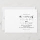 Denna moderna kalligrafinginbjudan till vågrät är perfekt för ett rustiskt bröllop. Den enkla och elegant designen har skript av typen klassisk och finare i svartvitt.