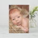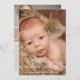 The elegant and minimalistic design of the baby boy birth announcement card features your beautiful newborn baby boy with a full photo on the front and a 4 photo collage on the back. Vertical card format. Personalize the modern calligraphy script in black lettering with the baby's full name and customize the remaining text with all the important birth stats.