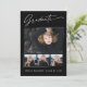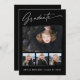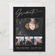 Fyra fotografier, trendig, moderna och elegant studenten-annonskort, med inslag av modern text med calligraphy bläck-skript. Student-bilderna på kortets framsida markeras med en delikat och minimalistisk övertoningsmarkör. Kortets baksida ger personlig textutrymmen för information om studenten eller kan raderas om du vill skicka ett meddelande till skrivan. Svartvit eller anpassa bakgrunden så att den passar din skolas primära färg eller valfritt färg. Perfekt för högskola, högskola och universiteten grad studenter.