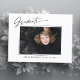 Trendig, moderna och elegant studenten-vykort för fotoannonsering, med inslag av modern text med calligraphy bläck-skript. Student bild på kortets framsida är elegant accentuerad med en delikat och minimalistisk övertoningsmarkör. Kortets baksida ger personlig textutrymmen för information om studenten eller kan raderas om du vill skicka ett meddelande till skrivan. Svartvit eller anpassa bakgrunden så att den passar din skolas primära färg eller valfritt färg. Perfekt för högskolan, högskolan och universiteten grad student.