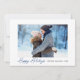 Modern minimalistisk elegance Calligraphy Bläck Pen Handskript Glad helg par Photo Helgdag Card - blått skript