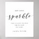 Anpassningsbar-designade bröllop-gnistskylt med "låt kärlek gnistra" och modern, minimalistisk svartvit design.