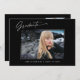 Trendig, modern text och elegant, tre foto, studenten-annonskort, med inslag av modern text med calligraphy bläck-skript. Fotona från student, fram och tillbaka, är ritade med en delikat och minimalistisk övertoningsmarkör. Kortets baksida ger personlig textutrymmen för information om studenten. Svartvit eller anpassa bakgrunden så att den passar din skolas primära färg eller valfritt färg. Perfekt för högskolan, högskolan och universiteten grad student.