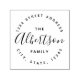 Anpassningsbar-designad, cirkulär självsvärtande returadress frimärke med personlig-familjens namn i modern manuell kalligrafi. Perfekt för meddelanden, helgdagskort, inbjudningar med mera!
