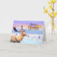 Det här "God jul"-kortet har ett landskap med träd och en polygonrenar.