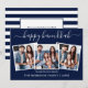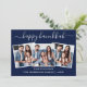 Modern Trendig Calligraphy Script 3 Photo Family Photo Collage Lycklig Hanukah Card - Navy Blue and White Rand Back